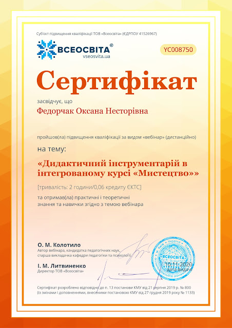 САМООСВІТА.КУРСИ ПІДВИЩЕННЯ КВАЛІФІКАЦІЇ (учителька української мови та літератури Дутка Мар'яна Ярославівна)
